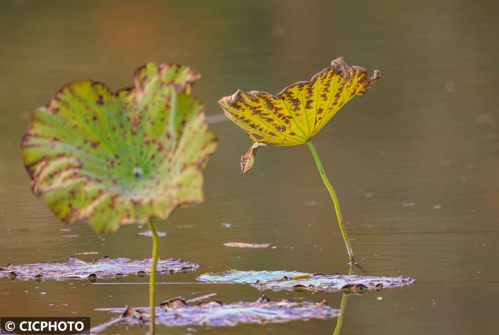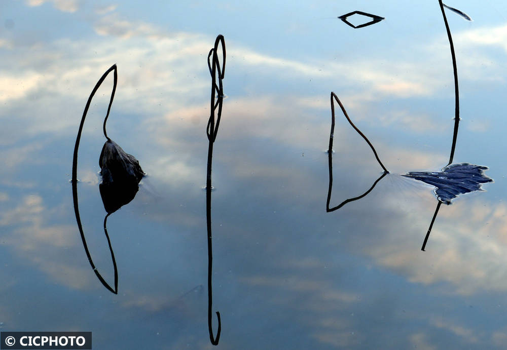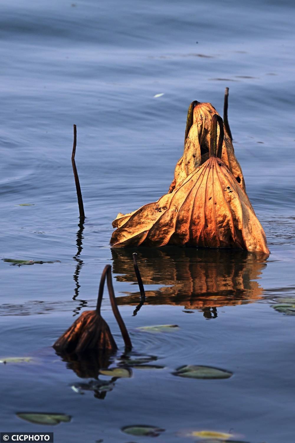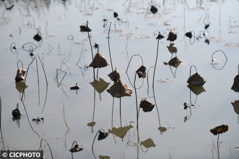 ↑2025年11月12日在辽宁省沈阳市丁香湖荷塘拍摄的残荷。CICPHOTO/赵敬东 摄