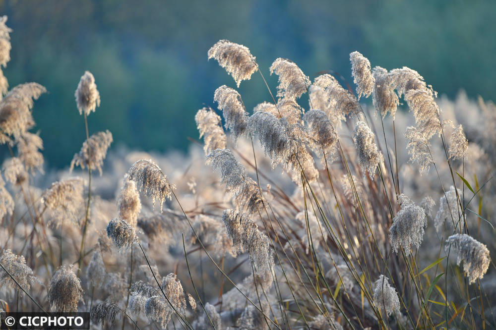 ↑2025年11月29日在山东省青州市南阳河景区拍摄的芦花。CICPHOTO/王继林 摄