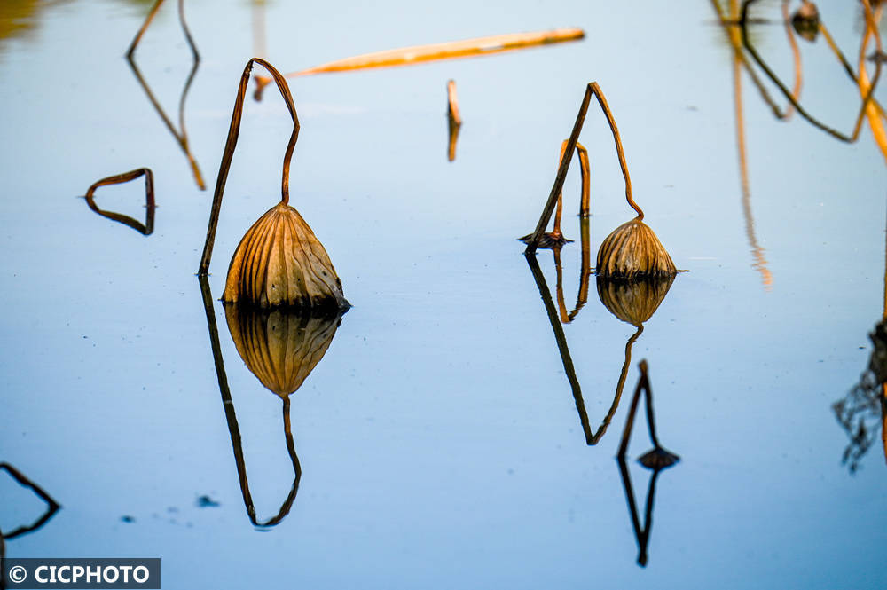 ↑2025年11月22日在贵州省铜仁市玉屏侗族自治县茶花泉景区拍摄的残荷。CICPHOTO/胡攀学 摄